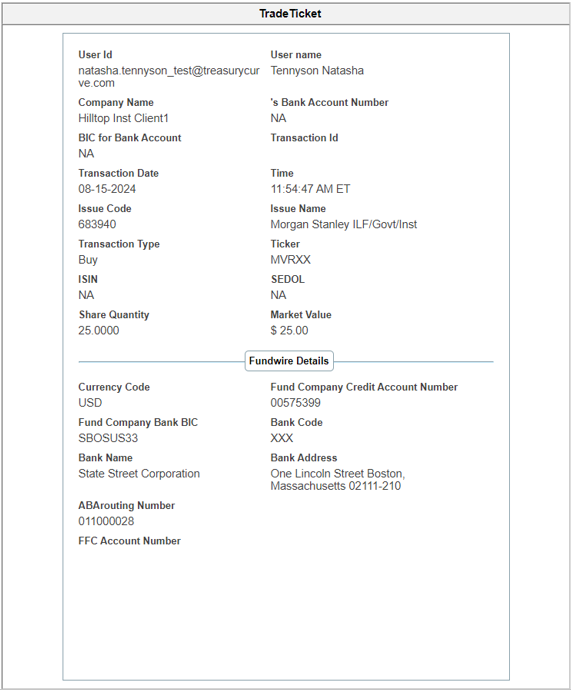 For share purchase, if you have enabled Treasury Curve Auto Settle, we will initiate payment from the selected linked bank account to settle the trade. If you have not enabled Treasury Curve Auto Settle, you must deliver the settlement amount to the bank account shown via FedWire before the Fed Cutoff that day.
